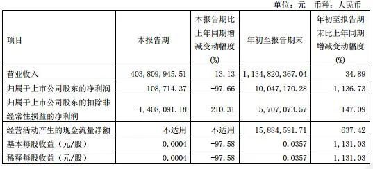 10月25日晚间,凤凰光学发布2021年第三季度报告,公司前三季度营业收入11.35亿元,同比增长34.89%;净利润1004.72万元,同比增长1136.73%。其中,第三季度净利润10.87万元,同比下降97.66%。