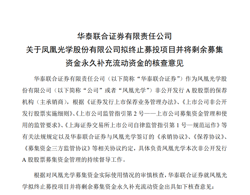 IT之家 11 月 28 日消息,凤凰光学今日发布公告,公司决定终止募集资金投资项目“车用高端光学镜片智能制造项目”和“高端光学镜头智能制造项目”,并拟将项目剩余募集资金及利息净额永久补充流动资金。