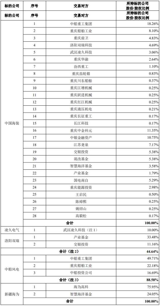 本次交易完成后,中船科技将直接持有中国海装100%股份和新疆海为100%股权,并将通过直接和间接方式合计持有凌久电气100%股权、洛阳双瑞100%股权和中船风电100%股权。