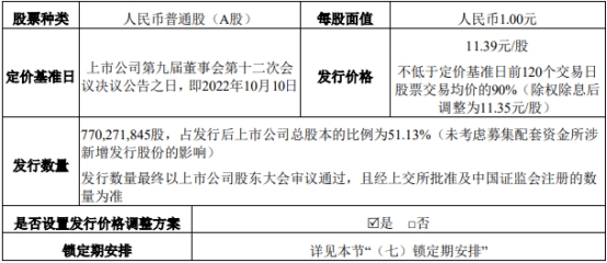 中船科技本次交易中,购买资产所发行股份数量为770,271,845股,占发行后上市公司总股本的比例为51.13%(未考虑募集配套资金所涉新增发行股份的影响)发行数量最终以上市公司股东大会审议通过,且经上交所批准及中国证监会注册的数量为准。定价基准日为上市公司第九届董事会第十二次会议决议公告之日,即2022年10月10日。发行价格为11.39元/股,不低于定价基准日前120个交易日股票交易均价的90%(除权除息后调整为11.35元/股)。