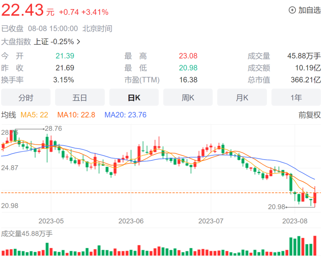 虽然负面消息不断,但人福医药股价不跌反涨。8月8日,人福医药报收22.43元/股,涨幅3.41%。