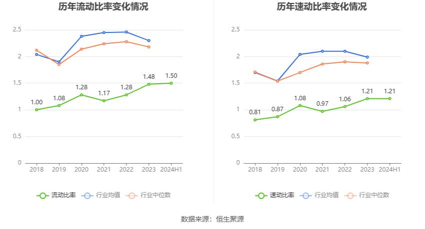 2024年上半年,公司流动比率为1.50,速动比率为1.21。