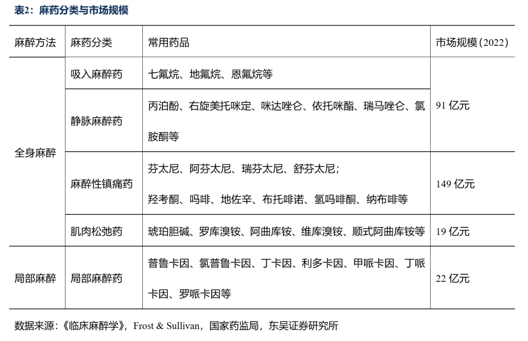 2.1.1.麻醉药种类繁多,2023年总市场规模超250亿元