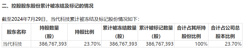 人福医药披露,截至2024年7月29日,当代科技持有人福医药的股份已全部被司法标记及轮候冻结。最近一年,当代科技因债务问题涉及的诉讼及仲裁共152起,标的金额合计约311.42亿元。