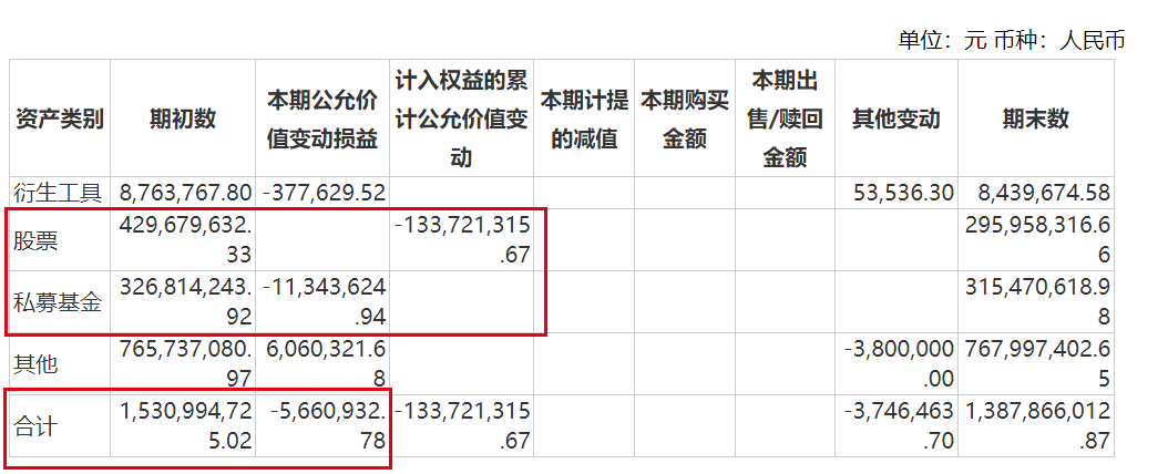 财报显示,2024年上半年,金融资产公允价值出现亏损的包括衍生工具、私募基金等。其中,私募基金公允价值亏损高达1134.36万元。