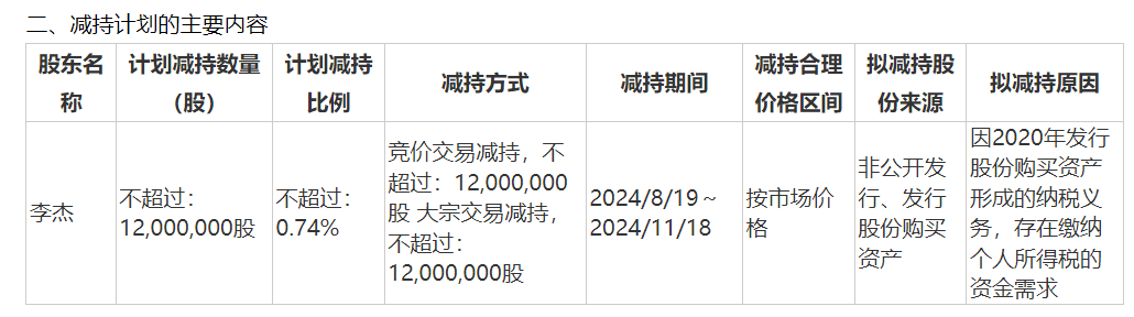 7月26日,人福医药发布公告称,公司董事长李杰计划通过上交所以集中竞价方式或大宗交易方式减持不超过1200万股公司股票。