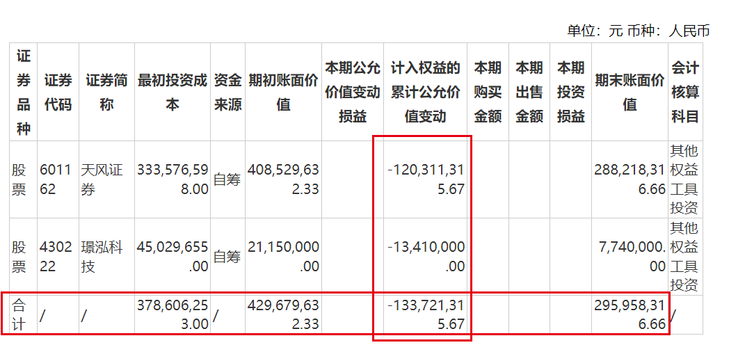 其中,天风证券还是人福医药投资的股票之一。今年上半年,人福医药投资的天风证券计入权益的累计公允价值亏损了1.20亿元。