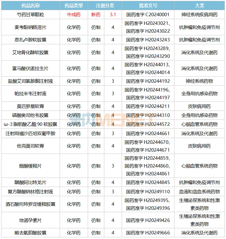 表1:人福医药2024年至今获批的新品(不含新适应症)