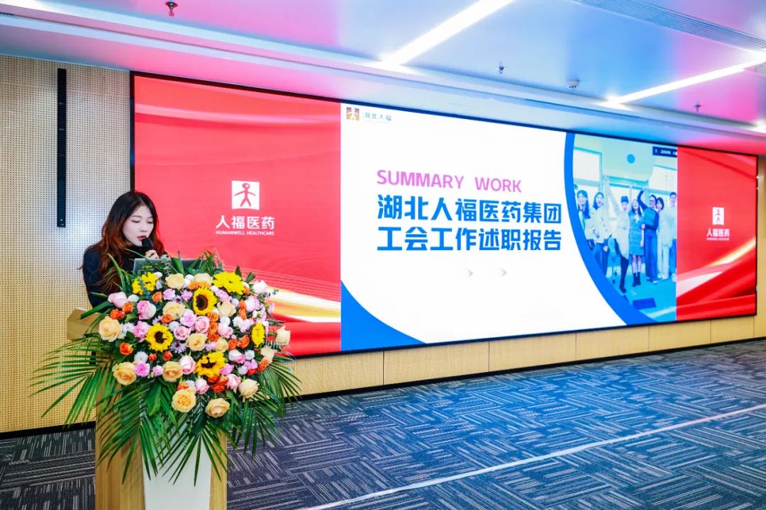 在优秀工会组织代表分享环节,宜昌人福药业工会副主席杜晓云、葛店人福财务总监兼工会主席郭玄仪、新疆维药武汉分公司总经理助理梁爱玲、武汉人福副总经理兼工会主席丁晶、湖北人福工会干部张馨月介绍了各自公司工会在传递组织温暖、体现以人为本,助力公司高质量发展等方面的工作情况。