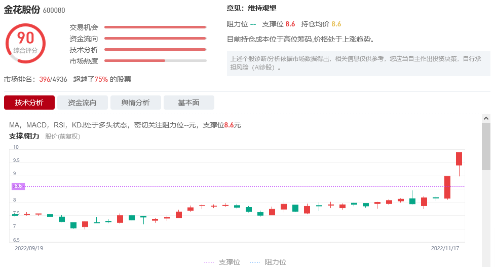 2022年11月18日,金花股份(600080)发布《关于股票交易异常波动的公告》,公司股票连续三个交易日内日收盘价格涨幅偏离值累计达到20%,属于股票交易异常波动情形。经自查核实,不存在应披露而未披露的重大信息。值得注意的是,金花股份(600080)投资者索赔案正在进行中,符合索赔条件的投资者可以积极提起诉讼。