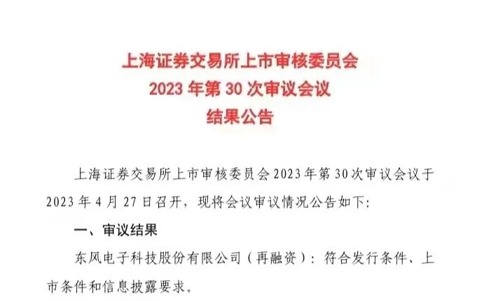 4月27日,东风电子科技股份有限公司(以下简称“东风科技”)向不特定对象配股项目在上海证券交易所上市审核委员会2023年第30次审议会议上获得审核通过。本次配股募集资金是进一步完善上市公司业务布局和提升核心竞争力的重要举措,也是加快东风汽车零部件(集团)有限公司核心业务“资产证券化”的关键一步。