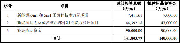 东风科技本次配股募集资金总额不超过人民币14亿元(含本数),扣除发行费用后,募集资金用于新能源-3in1和5in1压铸件技术改造项目、新能源动力总成及核心部件制造能力提升项目和补充流动资金。
