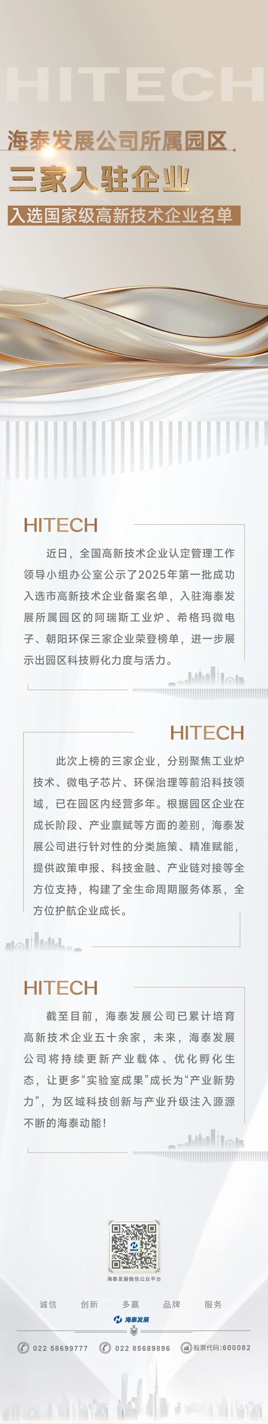 发展 · 资讯 | 海泰发展公司所属园区三家入驻企业入选国家级高新技术企业名单