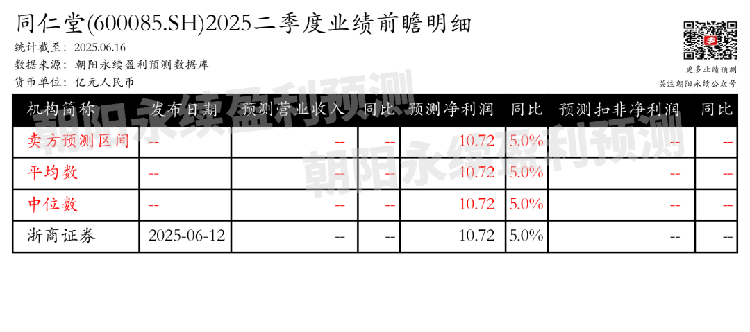 截至2025年06月16日,根据朝阳永续季度业绩前瞻数据: