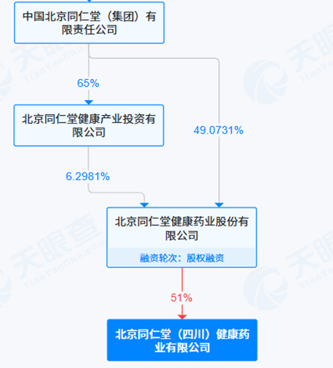 根据公开工商信息, 北京 同仁堂 健康药业股份有限公司持有四川健康药业51%的股份,是其控股股东。而中国 北京 同仁堂 (集团)有限责任公司又直接持有健康药业49.07%的股份。因此,涉事的四川健康药业在法律结构上属于 同仁堂 集团的“孙子辈”公司。