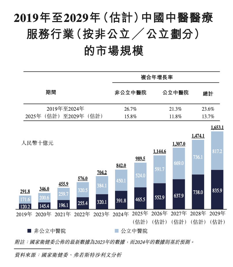 弗若斯特沙利文数据显示,中国非公立中医医疗服务市场规模从2019年的120亿元增长至2024年的392亿元,年复合增长率达26.7%。而在这样一个快速增长的赛道中,同仁堂医养的表现却明显掉队。