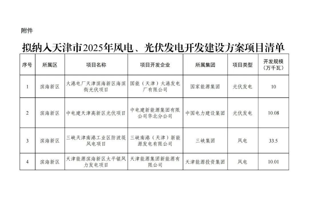 关于拟纳入天津市2025年风电、光伏发电开发建设方案项目的公示