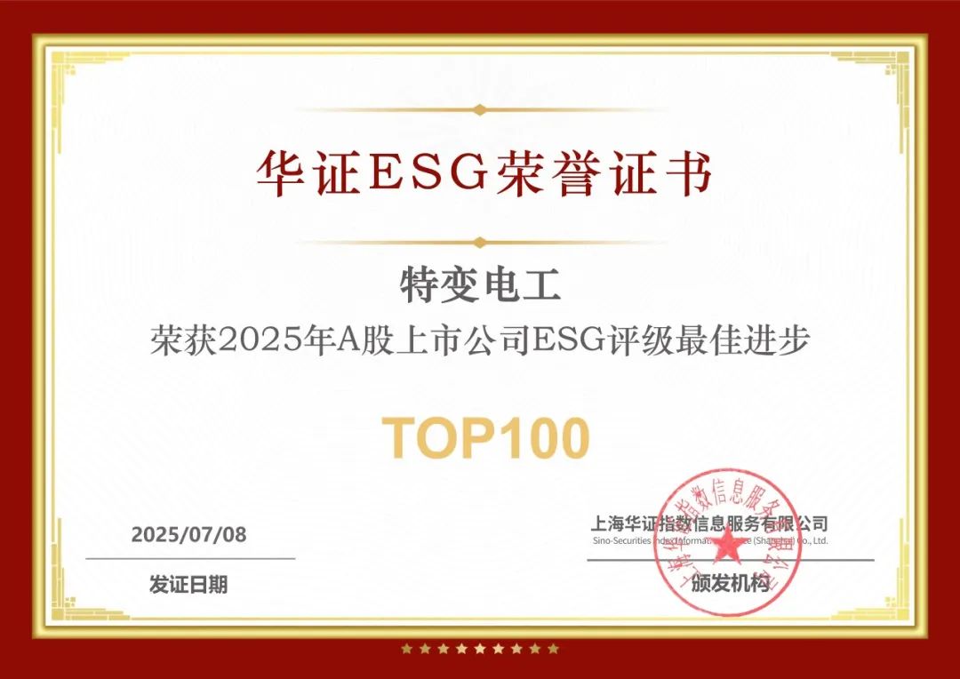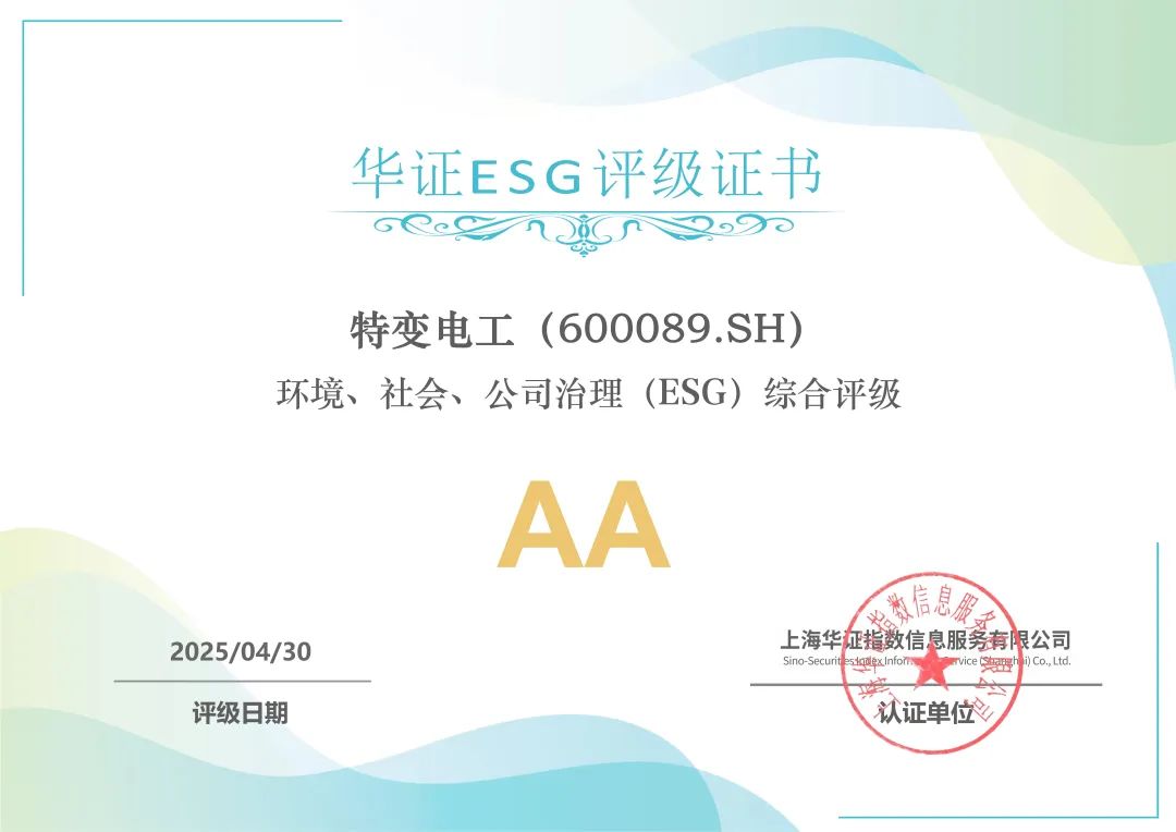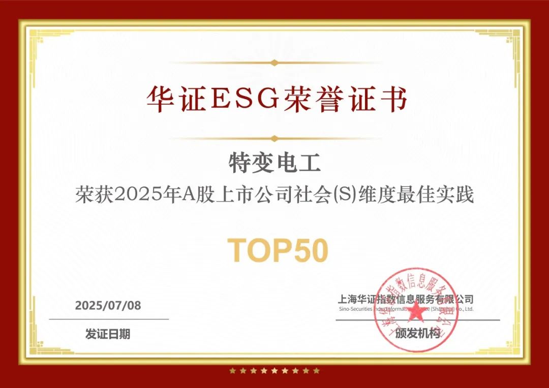 此次评级的大幅提升,彰显了特变电工在ESG领域的卓越绩效与持续进步。凭借优异表现,公司荣膺华证ESG评选的“A股上市公司社会(S)维度最佳实践TOP50”及“A股上市公司ESG评级最佳进步TOP100”两项重要殊荣。