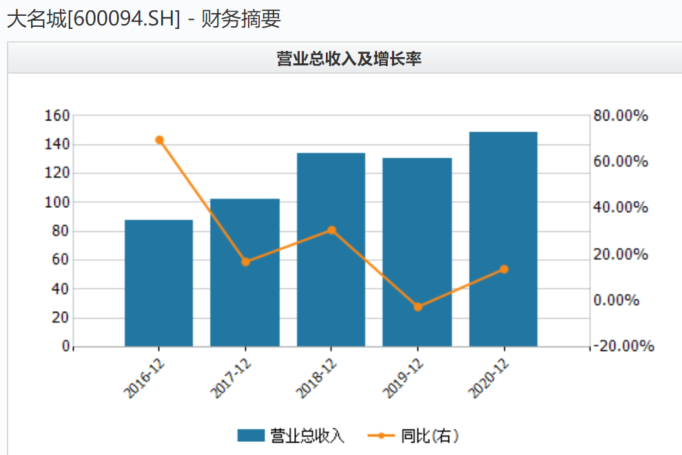 2020年,大名城营业收入148.37亿元,同比增13.75%;净利润为4.5亿元,同比下降39.7%;扣非净利润4.25亿元,同比下降43%。