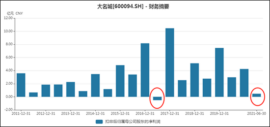 事实上,查看过去十年大名城的扣非归母近利润情况,今年上半年仅好于2017年上半年,甚至比受疫情扰动较大的2020年还要低迷。