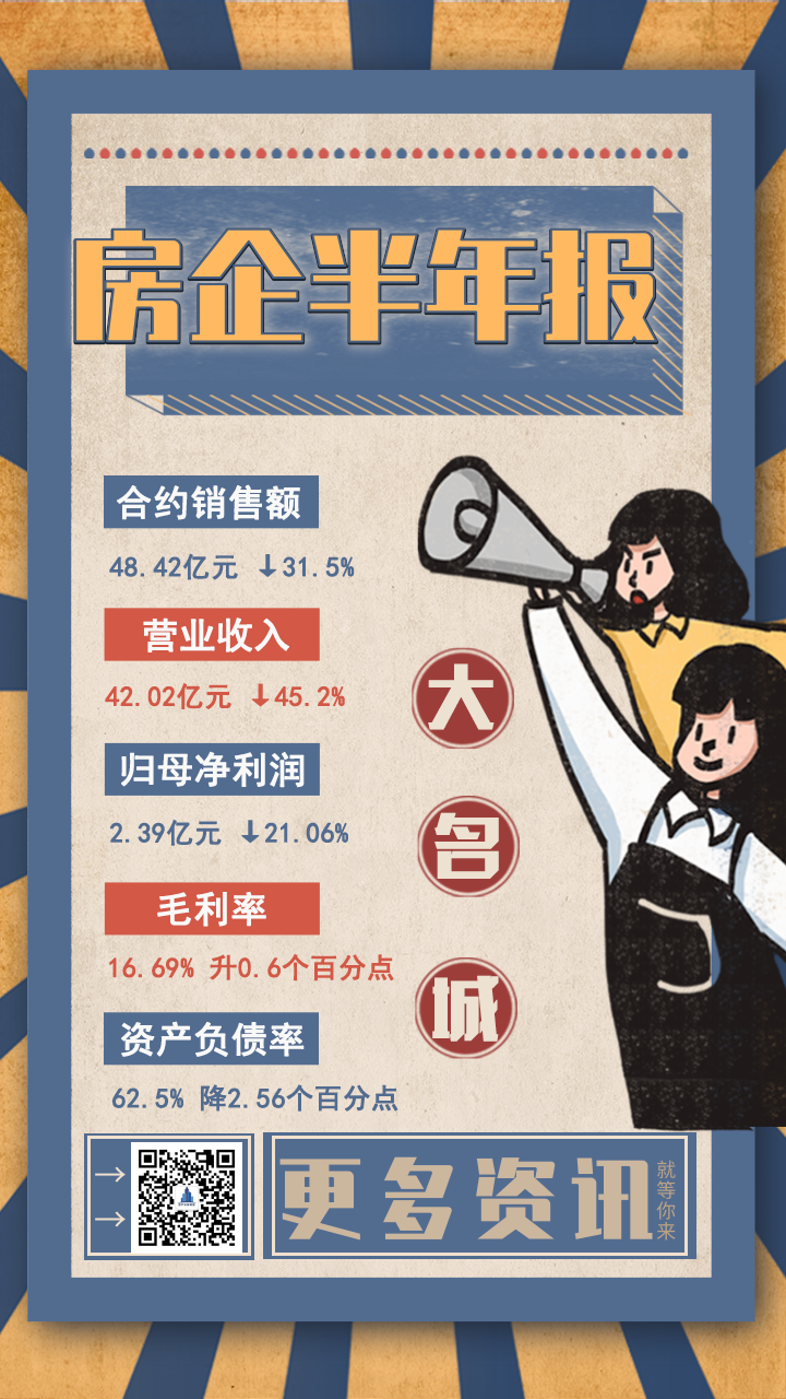 除经营指标外,大名城业绩的疲软在销售业绩上也体现得淋漓尽致。2020年上半年,该公司实现销售金额48.42亿元,同比减少31.45%;实现签约面积26.42万平方米,同比减少33.11%。