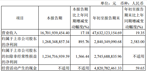 10月30日,云天化发布2021年三季度报告,前三季度公司实现营业收入476.32亿元,同比增长19.35%;归属于上市公司股东的净利润28.4亿元,同比增长2583%。其中,第三季度实现净利润12.68亿元,同比增长895.76%。