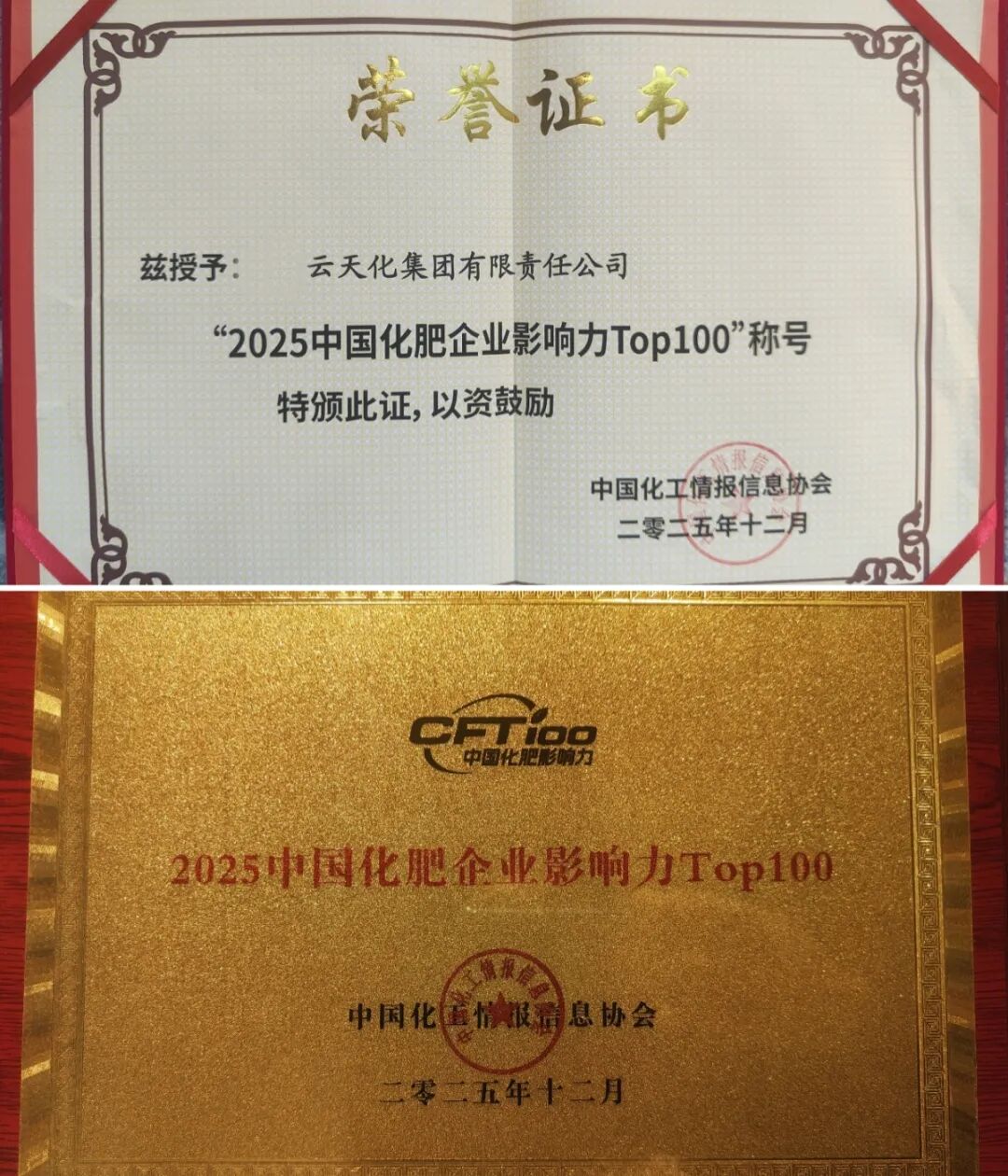 近日,由中国化工情报信息协会主办的2025化肥行业高质量发展会议在湖南长沙举办,云天化集团入选“2025中国化肥企业影响力Top100”榜单第2名,彰显了云天化作为“保障粮食安全的国家队”的综合实力与行业引领能力。