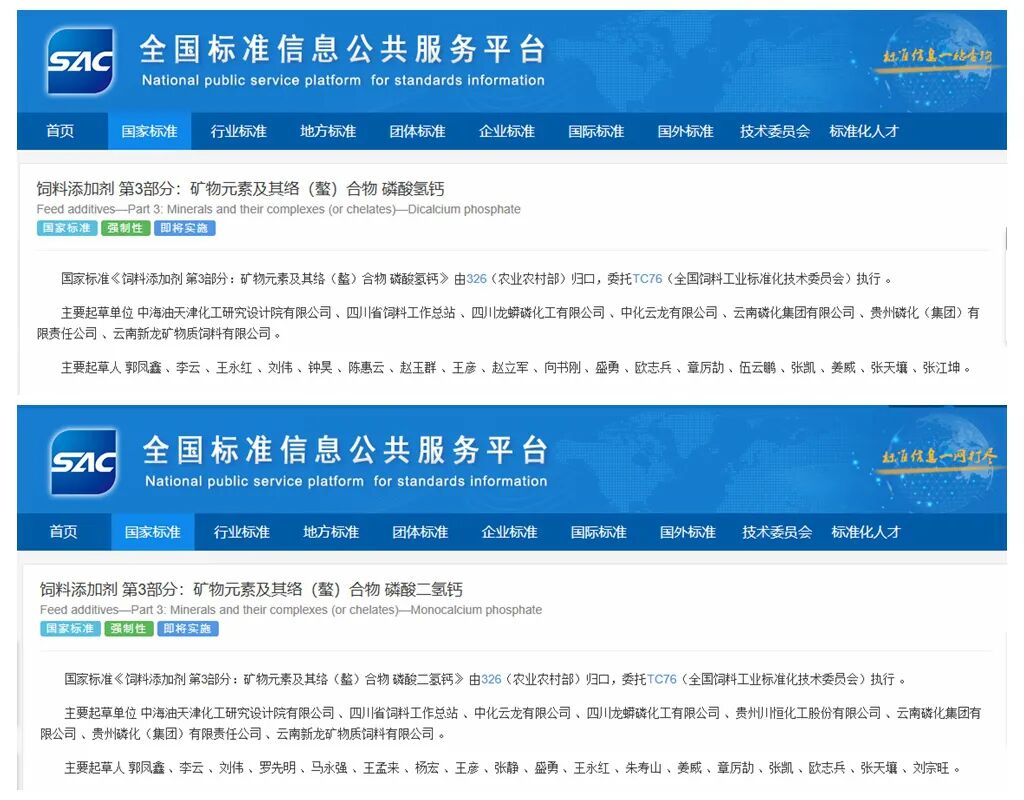 近日,由磷化集团牵头参与修订的《饲料添加剂第3部分:矿物元素及其络(螯)合物磷酸二氢钙》和《饲料添加剂第3部分:矿物元素及其络(螯)合物磷酸氢钙》两项国家强制性标准,在全国标准信息公共服务平台正式发布。该标准将于2027年1月1日起实施,全面替代2017年版本。