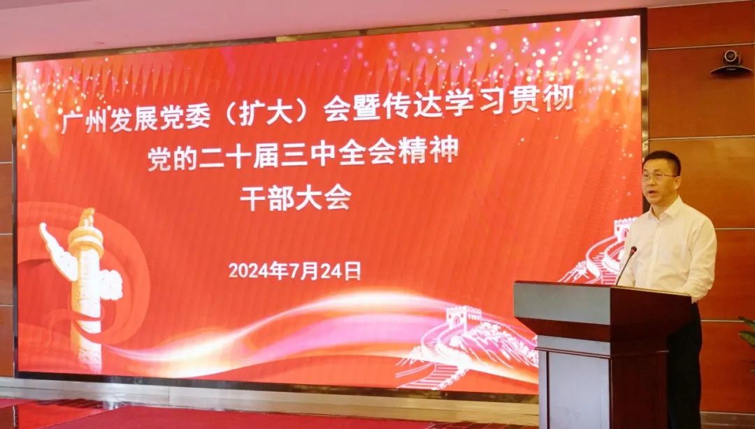 7月24日上午,广州发展集团召开干部大会,传达学习习近平总书记在党的二十届三中全会上的重要讲话精神和全会精神,落实省委、市委、市国资委干部大会要求,部署集团贯彻落实工作。集团党委书记、董事长蔡瑞雄主持会议并讲话。集团党委副书记、副董事长、总经理吴宏传达有关精神。集团党委成员出席会议。