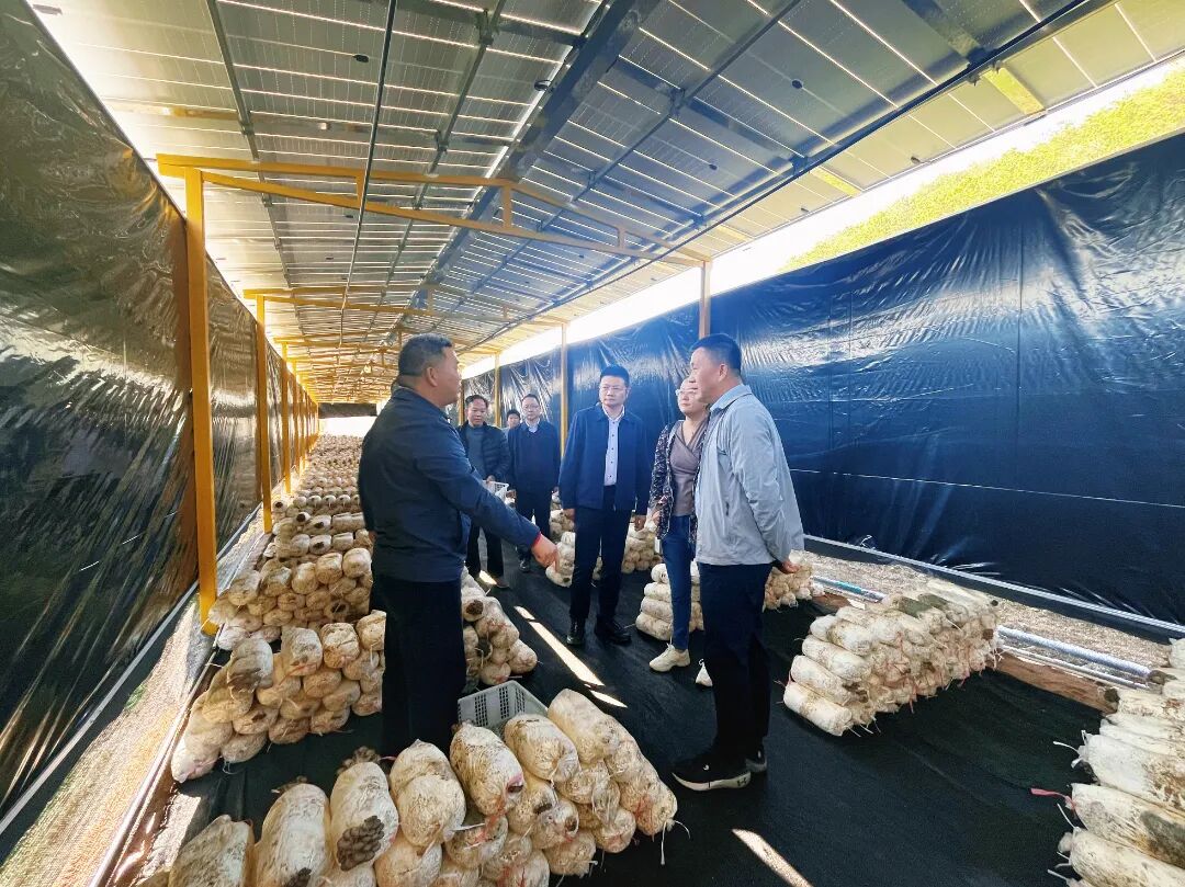 广州发展党委领导一行调研新铺镇光伏示范项目象岭片区的板下食用菌种植项目发展情况