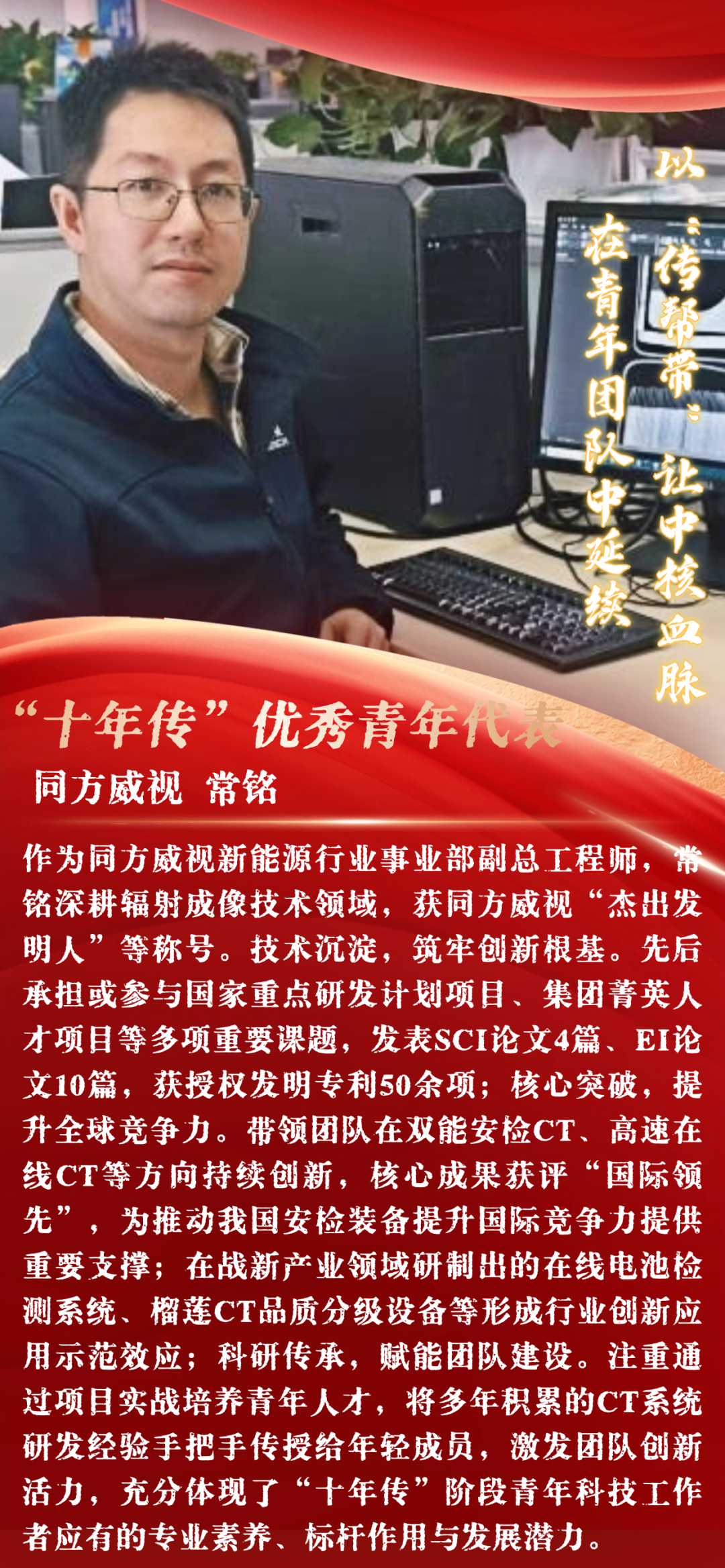 习 近平 总书记高度重视青年人才培养工作,强调“要支持青年人才挑大梁、担重任”。在深度融入集团公司发展战略、向着世界一流高科技企业奋进的征程中,涌现出一批心怀报国之志、勇于担当、甘于奉献的同方青年,他们立足产业一线,积极践行“四个一切”核工业精神、“强核报国创新奉献”的新时代核工业精神、“自强创新实干奉献”的同方精神和重大工程精神,在各自的领域取得了卓著成绩,为新时代青年树立了榜样。