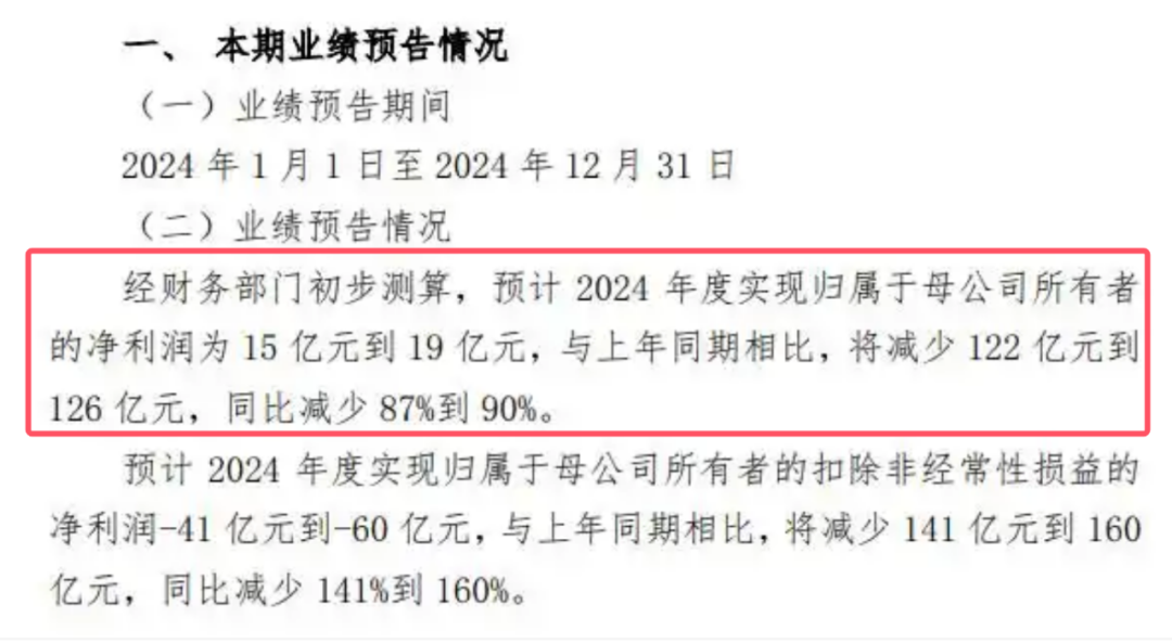 如果扣除非经常性损益,净利润则是巨亏41亿元-60亿元。