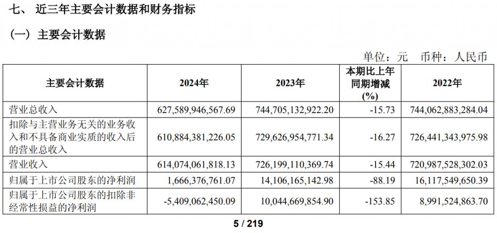 报告显示,2024 年上汽集团实现营业总收入为 6275.90 亿元,同比下滑 15.73%;归属于上市公司股东的净利润为 16.66 亿元,同比下滑 88.19%;归属于上市公司股东的扣除非经常性损益的净利润为 54.09 亿元,同比下滑 153.85%。