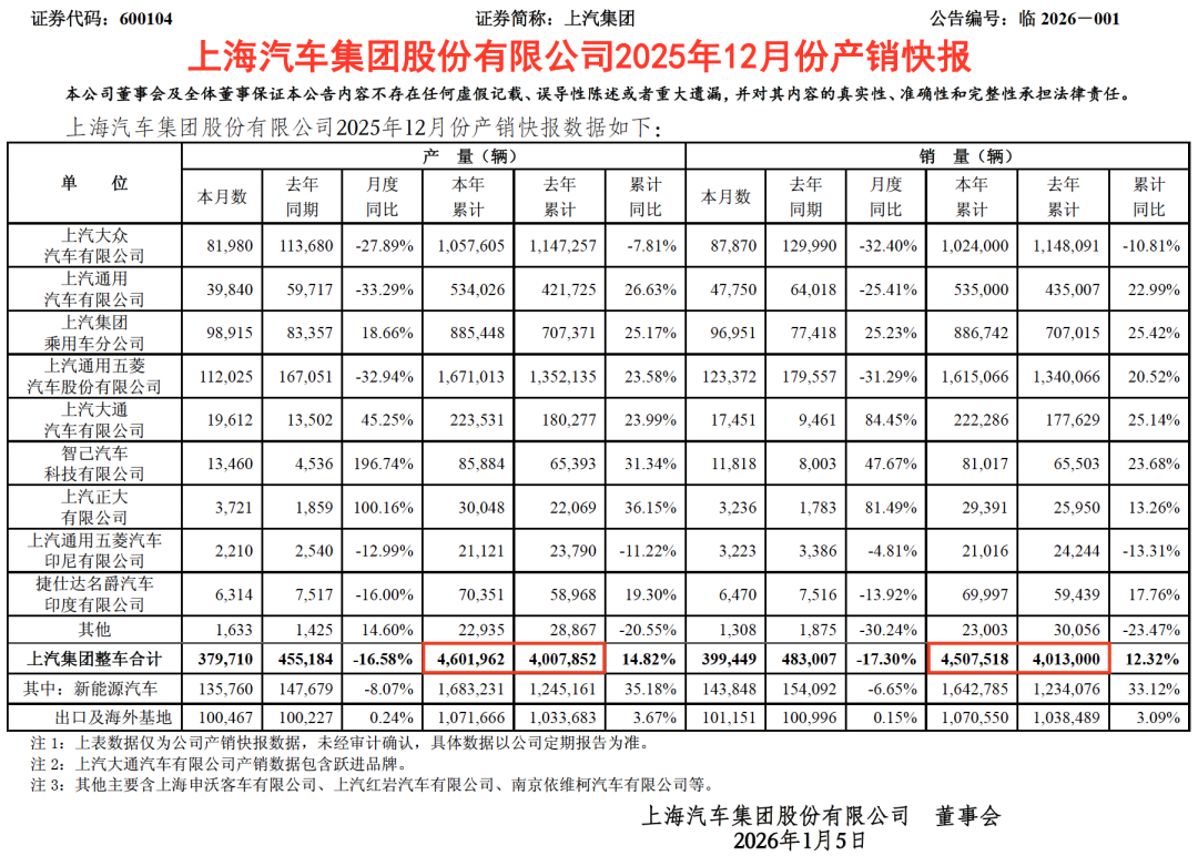 最新公告数据显示,2025年上汽集团全年整车销售450.75万辆,同比增长12.32%,终端零售达到467万辆。