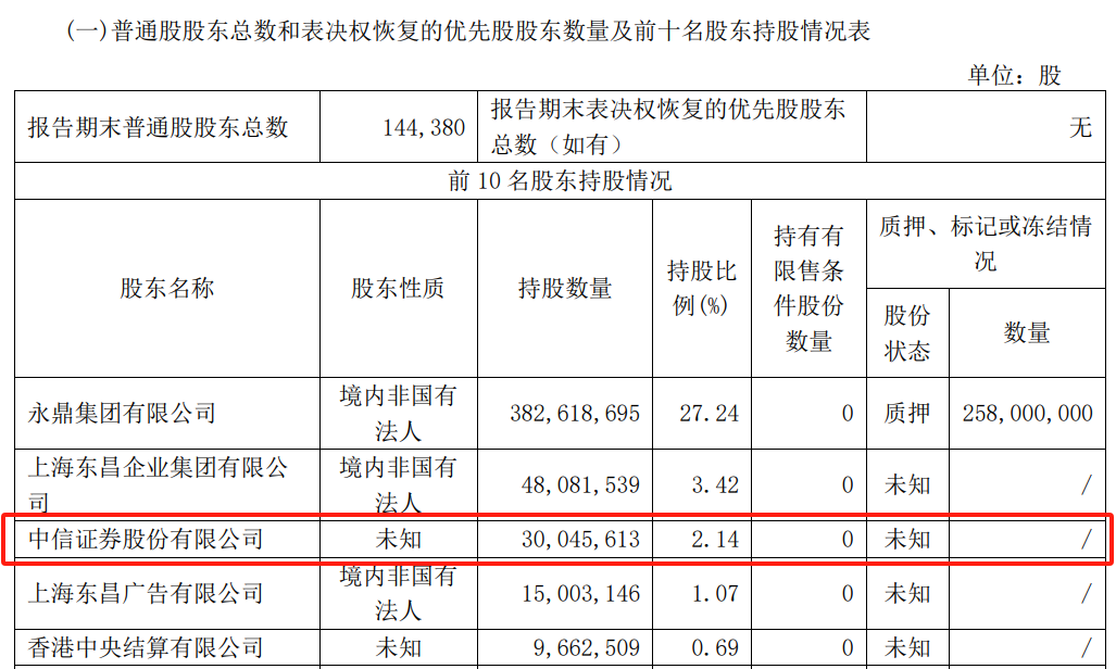 公开资料显示,2023年三季度末有多家基金、券商机构重仓持股永鼎股份。其中,中信证券持有3004.56万股,为该公司第三大股东。
