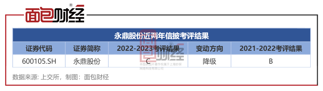 公开数据显示,2022-2023年度,永鼎股份信息披露考评的评价结果被交易所由B降至C。