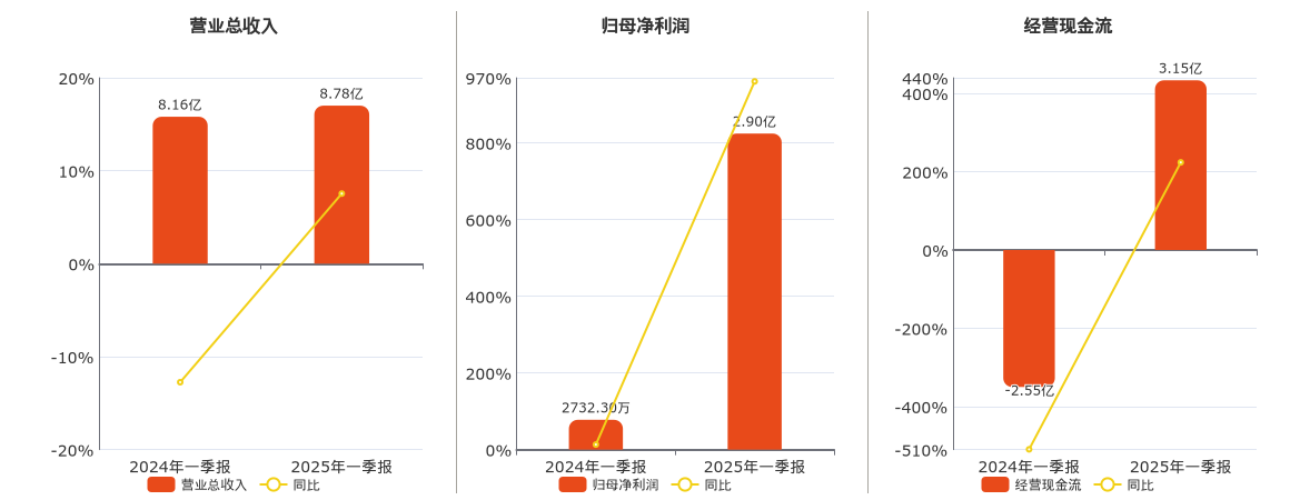 公司营业总收入为8.78亿元。归母净利润为2.90亿元。经营活动现金净流入为3.15亿元。