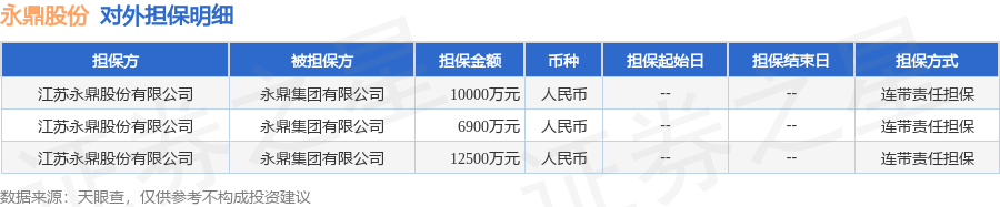 永鼎股份4月21日披露3笔对外担保,被担保方为永鼎集团有限公司。对外担保明细如下表: