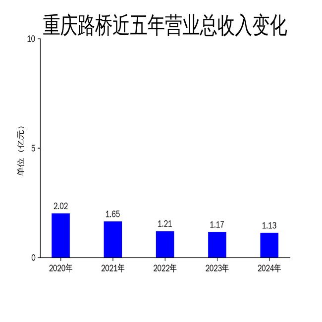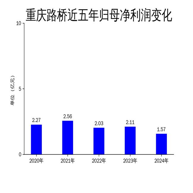 2025年5月5日,重庆路桥发布了2024年年报。报告显示,公司全年实现营业总收入1.13亿元,同比下降3.16%;归属净利润1.57亿元,同比下降25.55%;扣非净利润1.39亿元,同比下降20.89%。尽管公司在路桥收费业务和股权投资方面有所布局,但整体业绩表现不佳,转型之路面临诸多挑战。