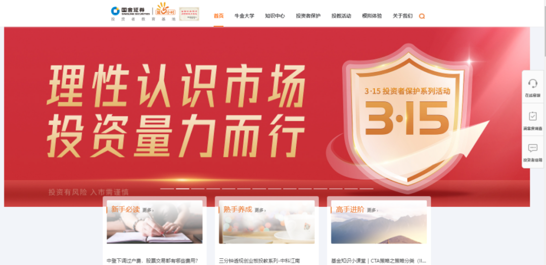 为进一步做好投资者合法权益保护工作,持续提高中小投资者的专业知识水平和风险防范意识,在中国证券业协会的指导下,国金证券第5小时投教基地(以下简称基地)于3月15日至4月开展3?15投资者保护主题教育活动(下称“3.15投资者保护活动”)。