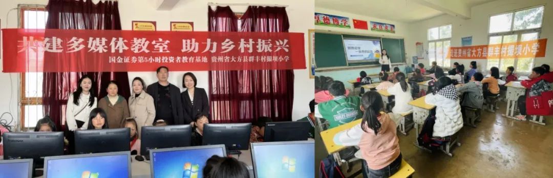为促进在边远乡村地区的金融知识普及,推动投教纳入国民教育,助力城乡教育均衡发展,公司第5小时投教基地于2022年3月28日走进贵州省撮坝小学,开展“共建多媒体教室助力乡村振兴”公益活动。本次活动中,基地在公司相关部门征集了22套台式计算机向校方捐赠,与学校携手打造了一间多媒体教室。