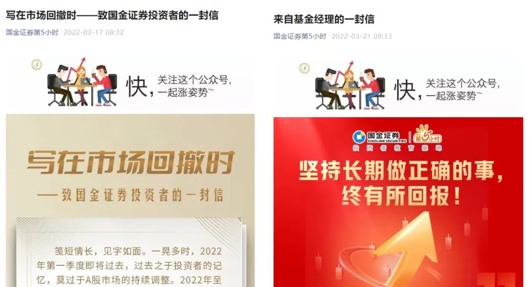 5、市场周期周而复始,人性情绪潮起潮落。为引导投资者敬畏市场识别风险,树立理性投资、价值投资、长期投资理念,公司通过基地向投资者推送了《写在市场回撤时》《坚持长期做正确的事,终有所回报》两封信,帮助投资者正确对待市场波动,理性参与投资活动。