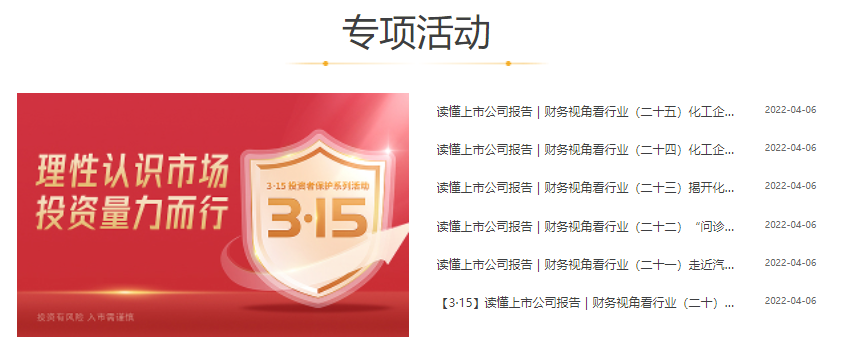 本次活动,公司在第5小时投教基地网站首页开展主题宣传,并设置专项活动宣传专栏,发布相关专栏的系列宣传文章。