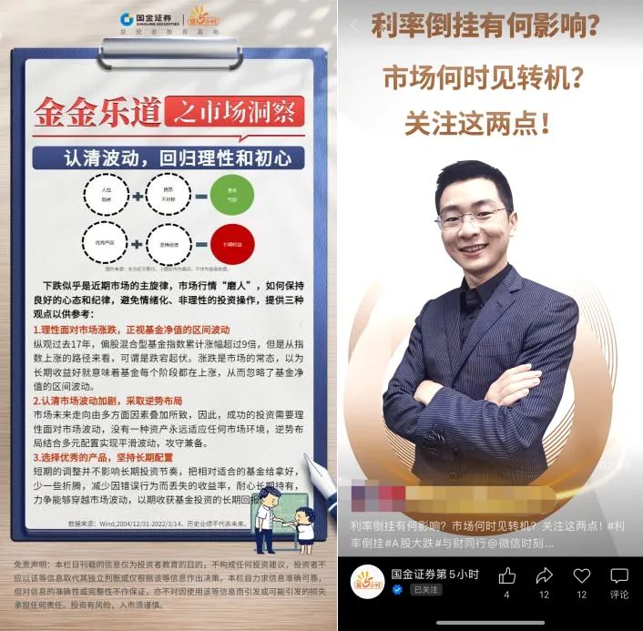 2、公司打造《金金乐道之市场洞察》系列图文和《热点解读》系列投教视频课程,及时向投资者解读市场热点,普及投资知识,提醒广大投资者增强防范意识,避免投资风险。