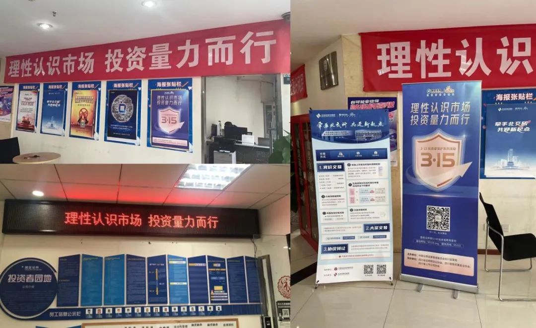 在线下投教活动方面,公司向各分支机构下发开展3.15投资者保护活动的相关通知,发动各业务单元力量,指导其围绕“理性认识市场投资量力而行”为主题,持续开展活动,包括在营业场所通过电子显示屏进行主题宣传,或在显著位置张贴海报、悬挂横幅等,开展走进社区等系列投教活动。