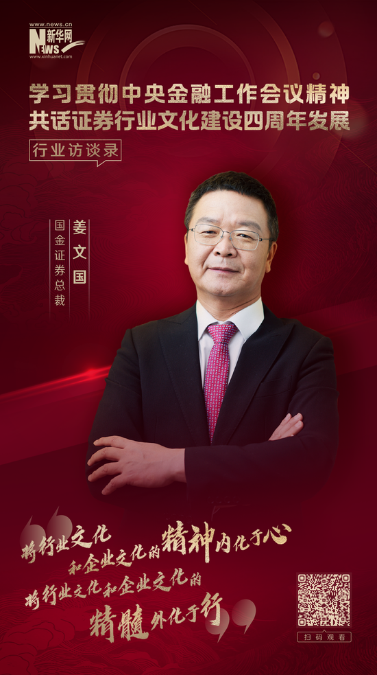 【编者按】2019年11月,中国证监会党委书记、主席易会满出席证券基金行业文化建设动员大会时提出要加快建设“合规、诚信、专业、稳健”的行业文化,为资本市场长期稳定健康发展提供价值引领和精神支撑。值此学习贯彻中央金融工作会议精神,践行证券基金行业文化建设四周年之际,新华网联合中国证券业协会推出“共话证券行业文化建设四周年访谈录”系列专栏,邀请机构高管分享在行业文化建设方面的实践成果与有益经验,聚焦开创证券基金行业文化建设新格局,用文化的力量引领方向、促进发展、塑造形象,为建设规范、透明、开放、有活力、有韧性的资本市场注入新动能、提供新支撑。