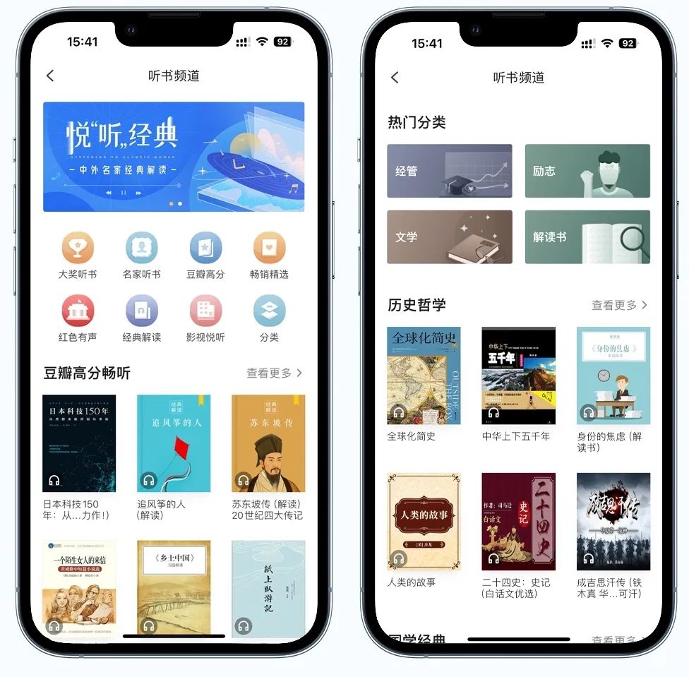 除了丰富的电子书资源,“悦读坊”还提供了数万集的听书资源,涵盖了解读书、人文社科、经管、文学、励志、国学等众多方向。这一功能使得员工在忙碌的工作间隙,也能通过耳朵去领略书籍的魅力,实现知识的有效获取。