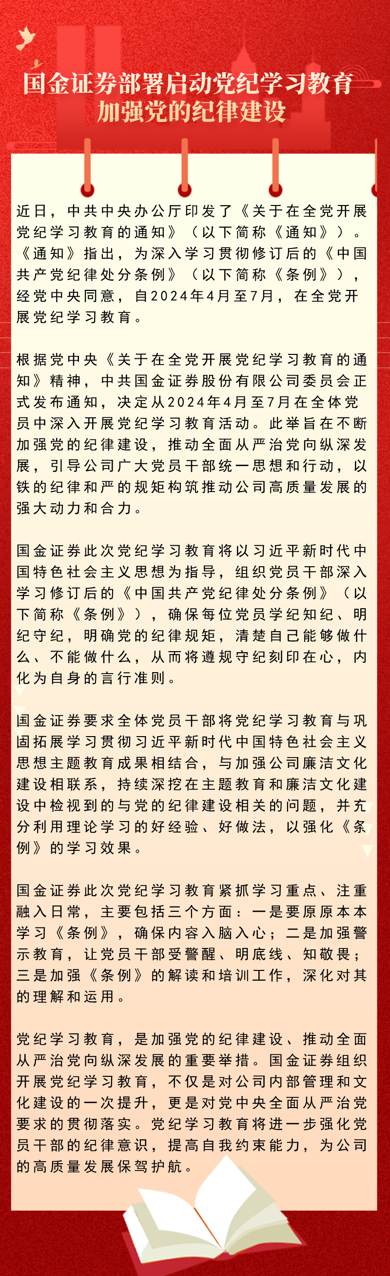 国金证券部署启动党纪学习教育 加强党的纪律建设
