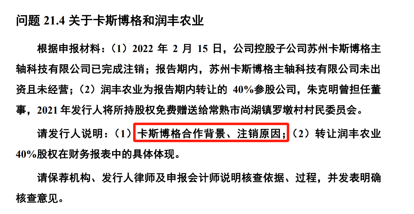 对此,上交所要求长城精工说明卡斯博格合作背景、注销原因以及转让润丰农业40%股权在财务报表中的具体体现。