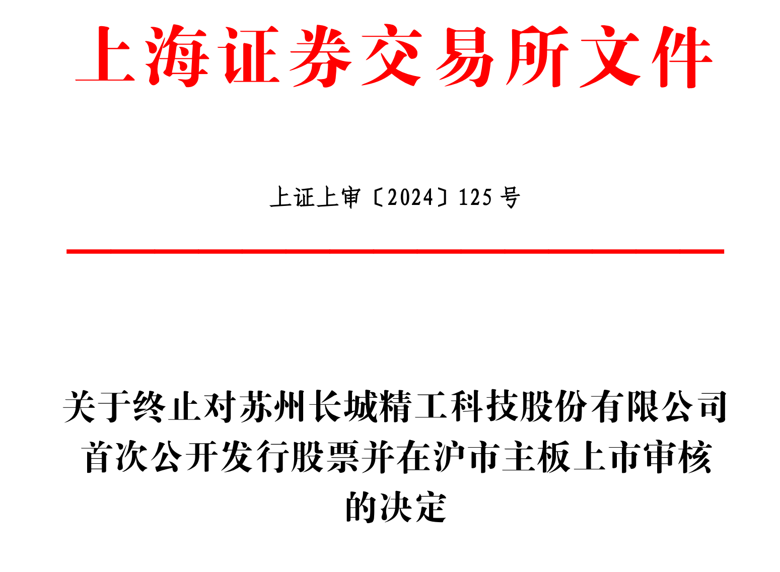 瑞财经邓如菲4月26日,上交所发布关于终止对苏州长城精工科技股份有限公司(以下简称“长城精工”)首次公开发行股票并在沪市主板上市审核的决定。